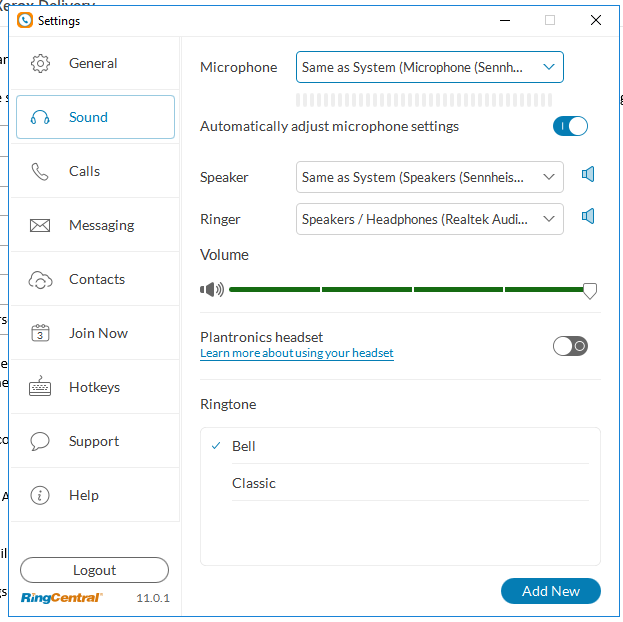 Note That the "Ringer" setting is set to "Speakers" and not the Sennheiser .